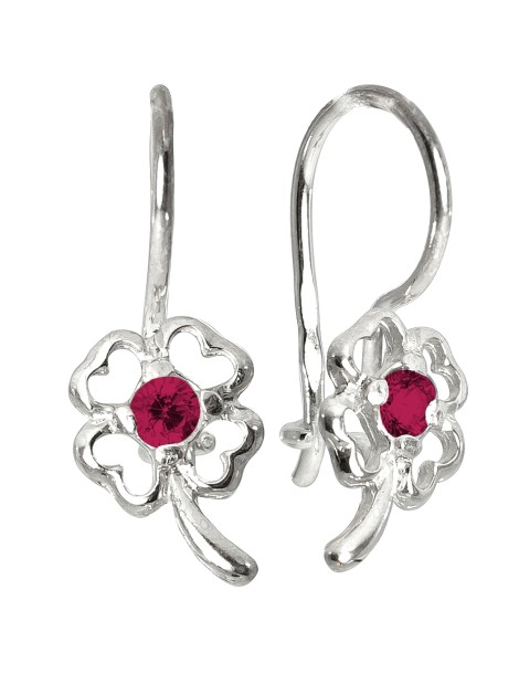 Urocze kolczyki w kształcie czterolistnych koniczynek, symbolizujących szczęście i pomyślność. Wykonane w całości ze srebra próby 925, z pięknie wypolerowaną powierzchnią oraz ażurowymi detalami. Centralnie zdobione kamieniem dostępnym w czterech wariantach: biała cyrkonia, różowa cyrkonia, rubin syntetyczny lub szafir syntetyczny. Wyposażone w wygodne zapięcie typu sztywny bigiel. Idealne na prezent!