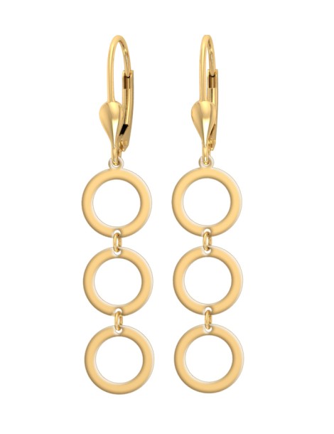Te eleganckie kolczyki z trzema okręgami to propozycja dla kobiet ceniących połączenie klasyki z nowoczesnym designem. Wykonane z wysokiej jakości żółtego złota próby 585, wyróżniają się prostą, ale bardzo efektowną formą.