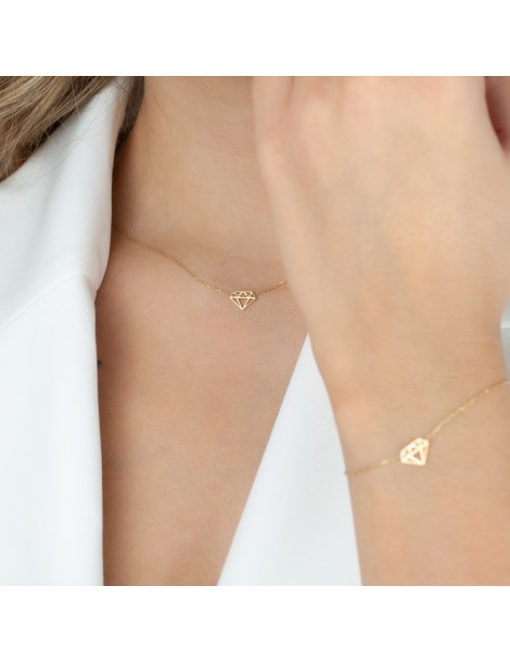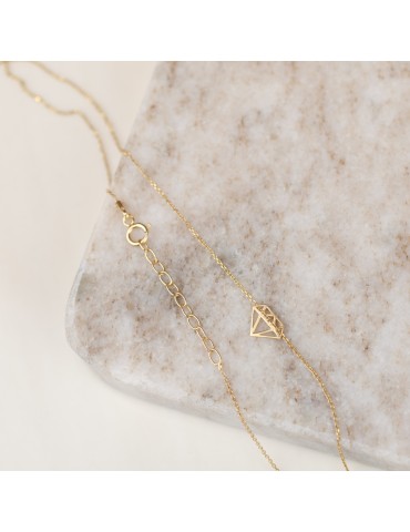 Celebrytki są doskonałym dodatkiem zarówno codziennych stylizacji jak i tych na wyjątkowe okazje. Delikatny łańcuszek zdobiony zawieszką w kształcie ażurowego brylantu jest niezwykle kobiecą i urokliwą ozdobą. Gładkie polerowane powierzchnie diamentu przepięknie się błyszczą. Komplet doskonale się sprawdzi w roli prezentu dla ukochanej bądź przyjaciółki. Dzięki przedłużce znajdującej się na końcu łańcuszków można regulować ich długość.