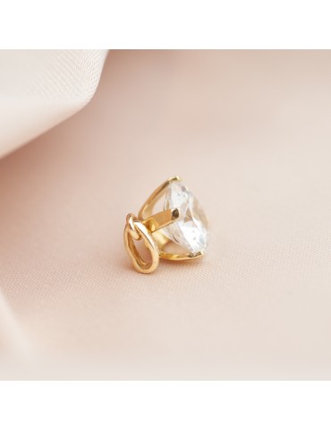 Zarówno wisiorek, pierścionek jak i kolczyki zdobią cyrkonie o średnicy aż 10 mm. Te imponujące kamienie są perfekcyjnie oszlifowane, dzięki czemu pięknie odbijają światło, tworząc efekt luksusu i blasku, który z pewnością przyciągnie uwagę. Delikatna oprawa kamieni sprawia, że cyrkonie wydają się „unosić” na tle złota, co dodaje całemu zestawowi lekkości i subtelności.