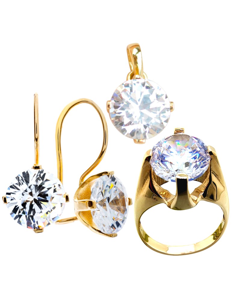 ZŁOTY KOMPLET Z DUŻYMI CYRKONIAMI 10 mm ZE ZŁOTA PRÓBY 585