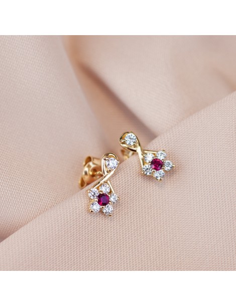 Kolczyki KWIATKI z rubinami...