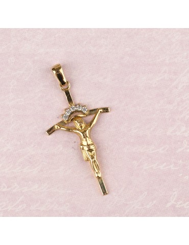 ZŁOTY KRZYŻYK PAPIESKI Z JEZUSEM Z CYRKONIAMI PR. 585