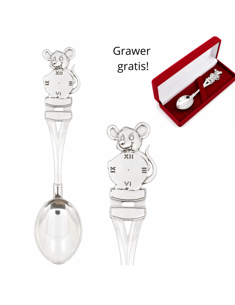 Łyżeczka do chrztu -MYSZKA- wykonana w całości ze srebra próby 0,925. REALIZACJA W CIĄGU 48H! GRAWER I PIĘKNE AKSAMITNE PUDEŁKO W KOLORZE CZERWONYM GRATIS!!!