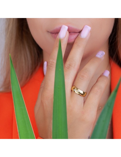 Zdobione są dwoma subtelnymi nacięciami biegnącymi równolegle przez cały obwód obrączek, co dodaje im nowoczesnego charakteru. Damska wersja dodatkowo wyróżnia się czterema lśniącymi cyrkoniami zakutymi w tzw. oprawie „na łapki”, które pięknie rozpraszają światło i przyciągają wzrok. Istnieje możliwość zamiany cyrkonii na brylanty – za dopłatą.