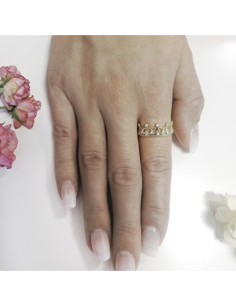 ZŁOTY PIERŚCIONEK KORONA Z CYRKONIAMI PRÓBA 585 – MY QUEEN REGAL CROWN