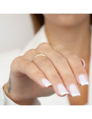 Wyjątkowy pierścionek zdobiony gustownym, ażurowym wzorem greckim. Całościowo wykonany z żółtego, 14-karatowego złota (próba 585), posiada elementy pokryte białym rodem dla pięknego blasku. Ten pełen elegancji pierścionek świetnie sprawdzi się w roli prezentu.