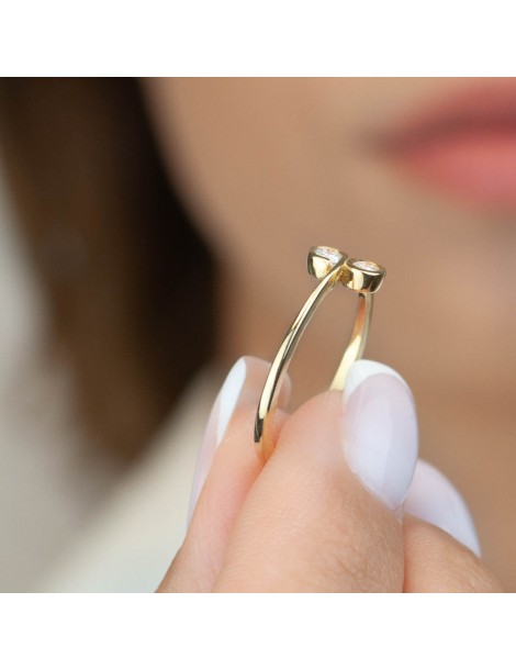 Urodę tego pierścionka podkreśla jego niebanalny design. 14-karatowe złoto owija się niczym wstęga wokół dwóch połyskujących cyrkonii. Kompozycja wyróżnia się oryginalnością, ale zachowuje swobodę i modny, minimalistyczny styl. To idealny pierścionek zaręczynowy dla wyjątkowej kobiety.