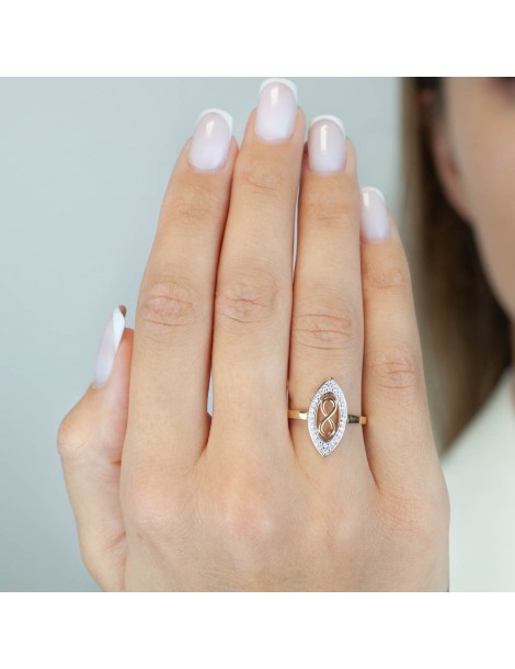 ZŁOTY PIERŚCIONEK ZARĘCZYNOWY MARKIZA Z ZNAKIEM NIESKOŃCZONOŚCI ZŁOTO 585 INFINITY Marquise Eternity