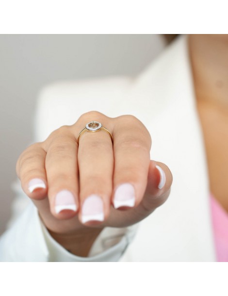 Pierścionek wykonany jest w całości z żółtego złota próby 585, które od lat cenione jest za idealny balans między trwałością a pięknym, ciepłym odcieniem. Precyzyjne wykończenie i gładko wypolerowane powierzchnie sprawiają, że biżuteria prezentuje się luksusowo i zachowuje swój urok przez długi czas.