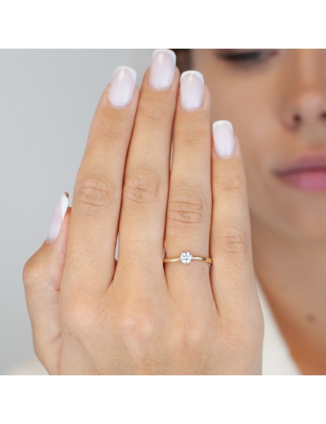 Elegancki i subtelny pierścionek z kolekcji Solitaire, wykonany z żółtego złota próby 585 i ozdobiony centralnie osadzoną, okrągłą cyrkonią. Smukła, delikatna obrączka w połączeniu z klasyczną oprawą typu solitaire sprawia, że kamień jest pięknie wyeksponowany, a całość prezentuje się lekko i bardzo kobieco. To idealny wybór dla osób ceniących minimalistyczny styl, ponadczasową formę i biżuterię, która pasuje zarówno do codziennych stylizacji, jak i na wyjątkowe okazje, w tym zaręczyny.