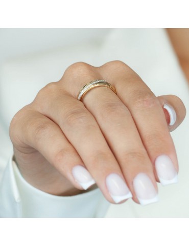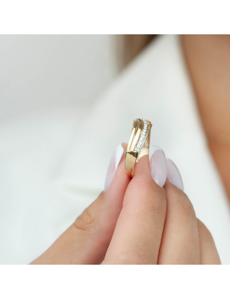 ZŁOTY PIERŚCIONEK WSTĘGA Z CYRKONIAMI ZŁOTO PR. 585