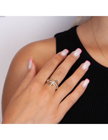 Intensywnie połyskujący złoty pierścionek z pasami białych cyrkonii. Szeroki, o oryginalnej konstrukcji, kunsztownie wykonany ze złota próby 585. Przepięknie się mieni w promieniach słońca jak i w sztucznym świetle. Z pewnością będzie zwracał uwagę, doda szyku każdej stylizacji.