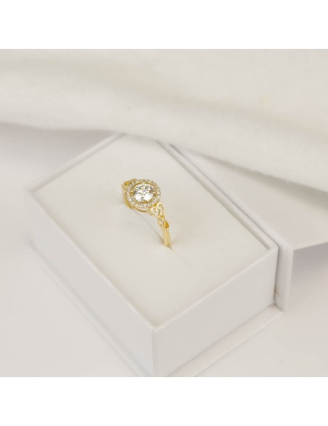 ZŁOTY PIERŚCIONEK Z DUŻĄ OKRĄGŁĄ CYRKONIĄ I SERDUSZKAMI PRÓBA 585 – LUNA DISC AMORIA