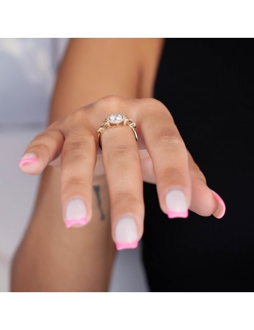 Pomimo dekoracyjnych detali pierścionek zachowuje wygodę noszenia dzięki dobrze wyprofilowanej szynie. To model, który doskonale sprawdzi się jako pierścionek zaręczynowy lub wyjątkowy prezent dla bliskiej osoby.