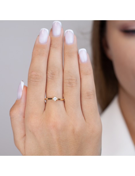 ZŁOTY PIERŚCIONEK ZARĘCZYNOWY KLASYCZNA CYRKONIA PRÓBA 585 – SOLITAIRE PRINCESS CLASSIC