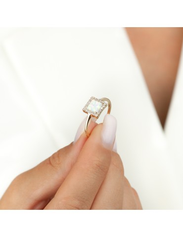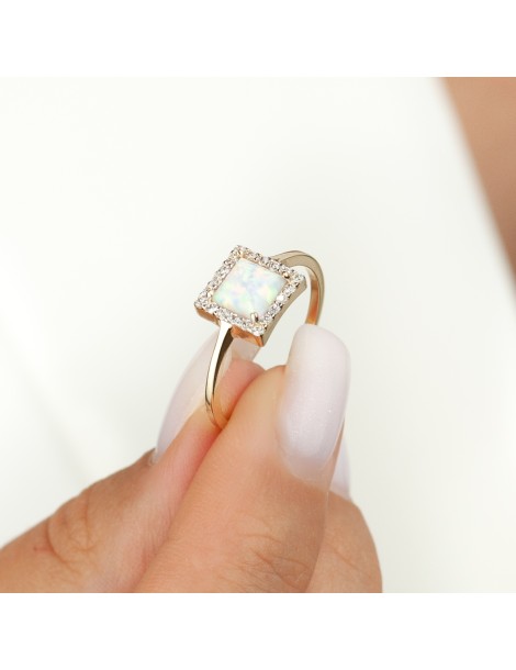 ZŁOTY PIERŚCIONEK Z OPALEM KWADRAT PRÓBA 585 – GEM SQUARE LUMINA
