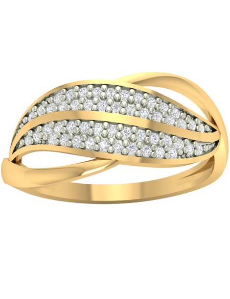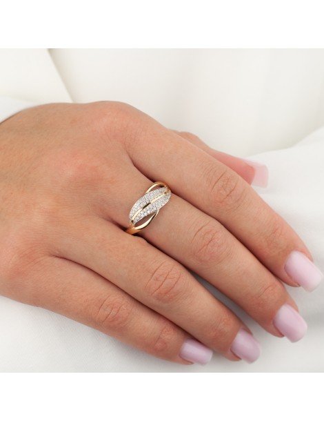 PIERŚCIONEK Z ŻÓŁTEGO ZŁOTA 585 Z CYRKONIAMI I FALISTYM WZOREM