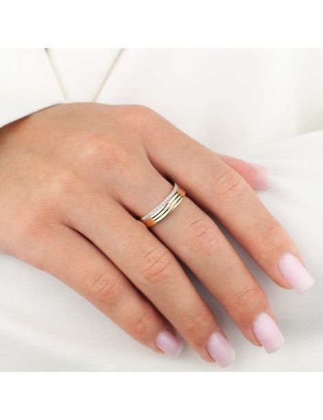 PIERŚCIONEK Z ŻÓŁTEGO ZŁOTA 585 Z POTRÓJNĄ LINIA I CYRKONIAMI