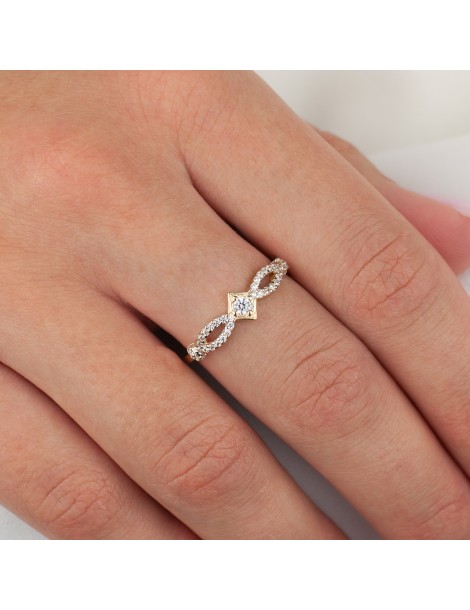 PIERŚCIONEK Z ŻÓŁTEGO ZŁOTA 585 Z CENTRALNĄ CYRKONIĄ W GEOMETRYCZNEJ OPRAWIE