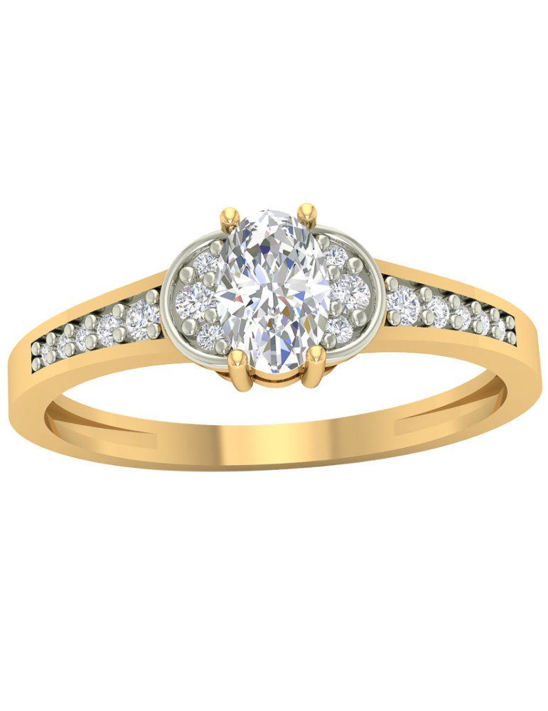 ZŁOTY PIERŚCIONEK 585 Z OWALNĄ CYRKONIĄ I BOCZNYMI KAMIENIAMI