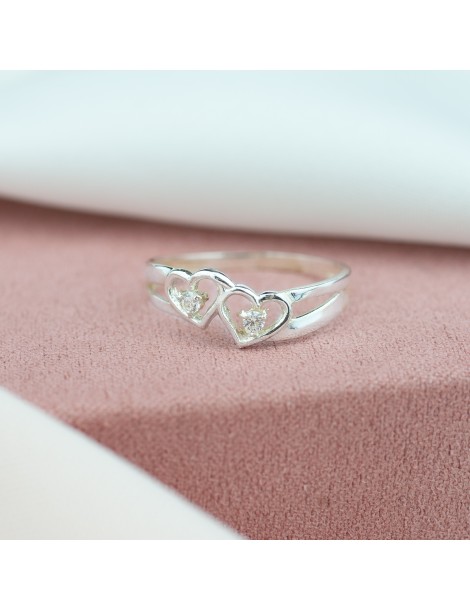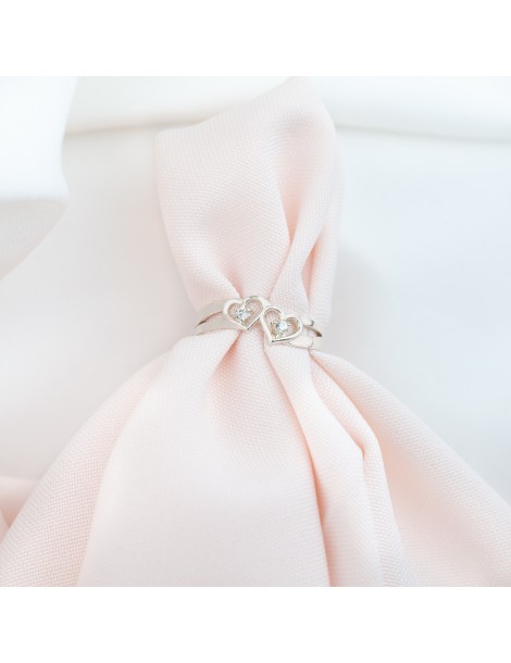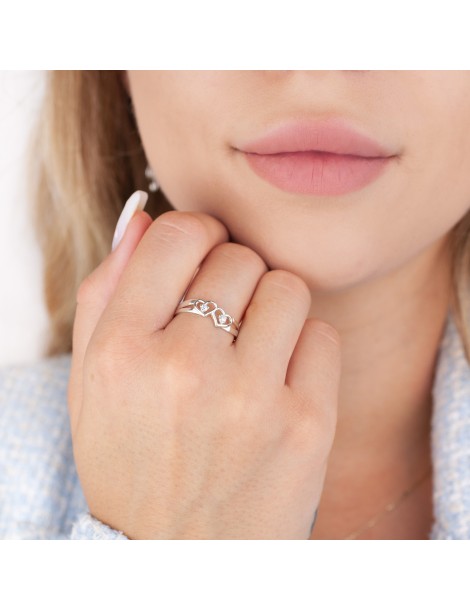 SREBRNY PIERŚCIONEK DWA SERDUSZKA Z CYRKONIAMI SREBRO 925 SERCE NA WALENTYNKI DLA UKOCHANEJ