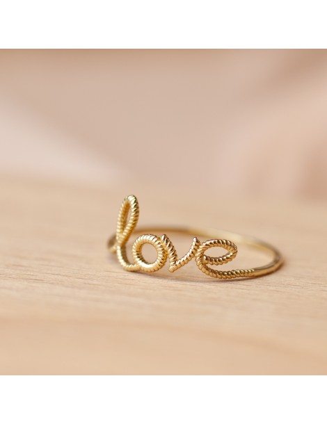 Delikatny pierścionek LOVE wykonany w całości z żółtego, 14 karatowego złota (próba 585). REALIZACJA W CIĄGU 48H !