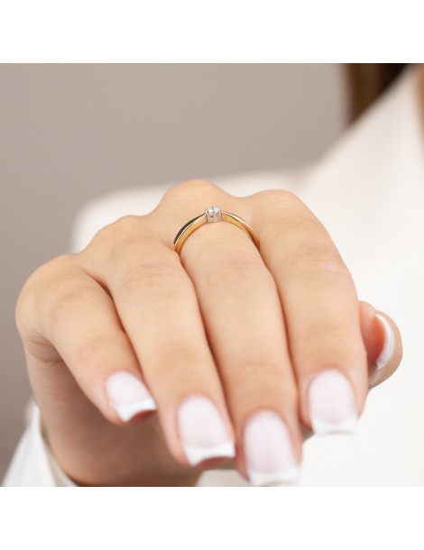 Elegancki pierścionek z kolekcji Solitaire wykonany z żółtego złota próby 585, ozdobiony centralnie osadzoną okrągłą cyrkonią. Charakterystyczna, delikatnie zwężająca się ku kamieniowi obrączka nadaje całości smukły i lekki wygląd, jednocześnie subtelnie podkreślając blask kamienia. Klasyczna forma w nowoczesnym wydaniu sprawia, że pierścionek doskonale sprawdzi się jako pierścionek zaręczynowy, romantyczny prezent lub ponadczasowy element codziennej biżuterii.