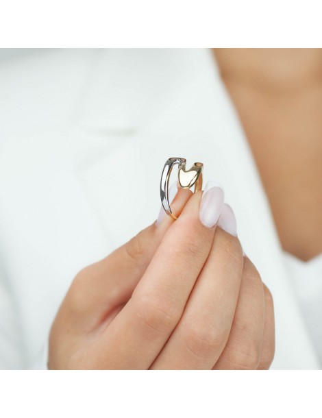 Awangardowy pierścionek, wykonany w całości z żółtego złota próby 585 polerowanego na wysoki połysk. Przepięknie lśni, niczym płynne złoto! Część złotej wstęgi pokryto białym rodem, co tworzy interesujące, dwukolorowe wykończenie o zwracającym uwagę efekcie kontrastu. Rodowany element odgraniczony jest od powierzchni żółtego złota za pomocą diamentowanego nacięcia. Z takim pierścionkiem na pewno będziesz się wyróżniać! To ciekawa, niebanalna propozycja dla każdej miłośniczki mody i śmiałego stylu.
