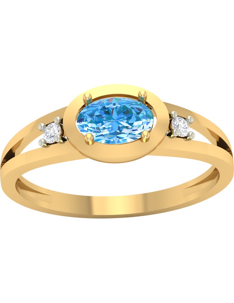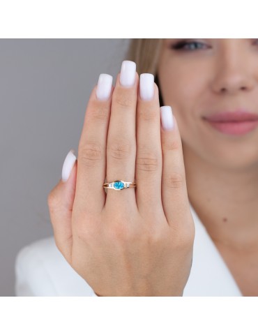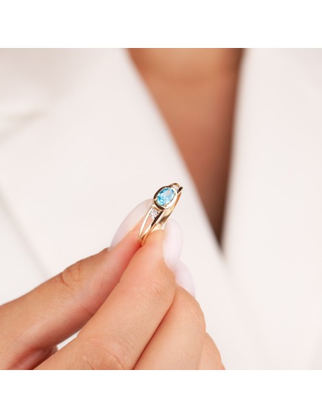 ZŁOTY PIERŚCIONEK OZDOBNY Z AKWAMARYNEM NA PREZENT PR. 585