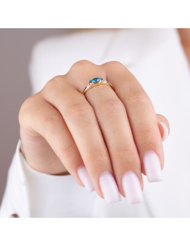 Złoty pierścionek próby 585, ozdobiony pięknym akwamarynem oraz lśniącymi cyrkoniami. Jego elegancki design i doskonała jakość wykonania sprawiają, że wyróżnia się w tłumie i przyciąga uwagę swoim blaskiem. Doskonały prezent na każdą okazję, który zachwyci każdego.