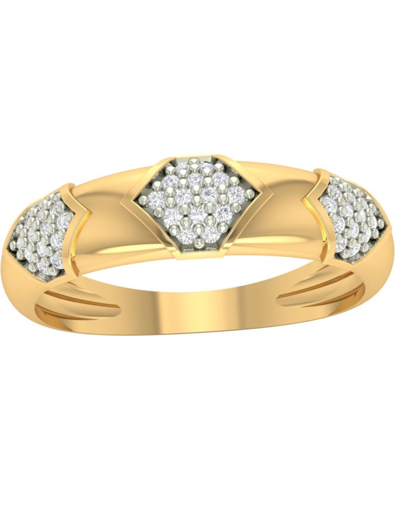 Złoty pierścionek próby 585 o średniej szerokości z trzema okrągłymi elementami, każdy wysadzany 14 białymi cyrkoniami. Cyrkonie osadzone są tak, że nie wystają, co zapewnia komfort noszenia. Subtelnie okrągły kształt i ozdobny design sprawiają, że pierścionek wygląda efektownie zarówno z bliska, jak i z daleka. Idealny na co dzień lub wyjątkowe okazje.
