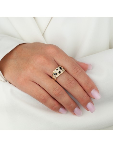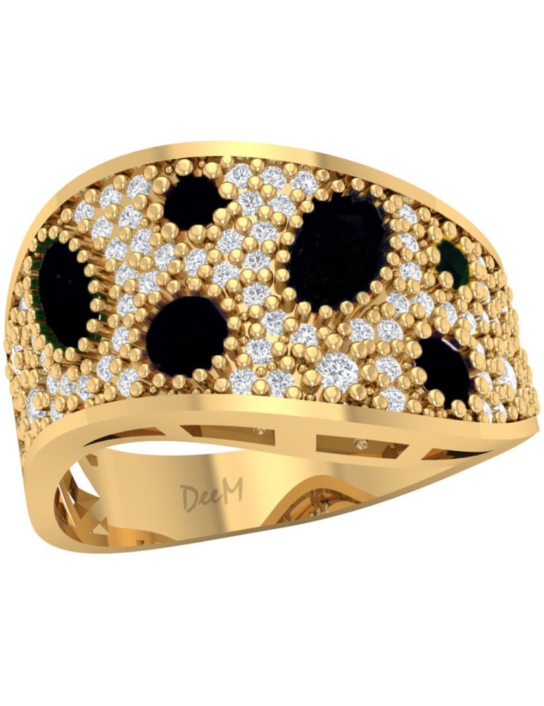 Złoty pierścionek próby 585 o szerokiej szynie łączy styl vintage z nowoczesnym designem. Zdobi go 6 czarnych cyrkonii o eleganckim, tajemniczym blasku. Dostępny także w wersji z kolorowymi kamieniami, idealny dla osób ceniących indywidualizm. Złoto próby 585 wyróżnia się wysoką trwałością i odpornością na uszkodzenia, a przy tym zachowuje swój szlachetny blask przez lata. Pierścionek pakowany jest w eleganckie pudełko, gotowe na prezent.