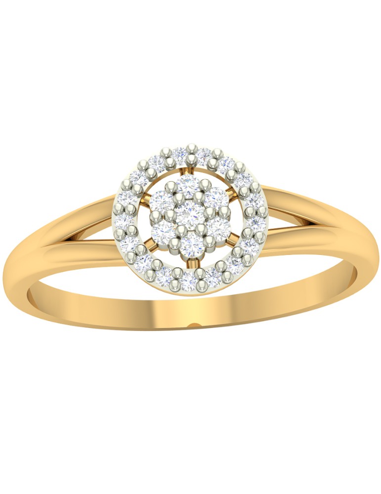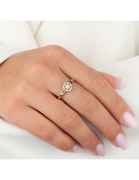 PIERŚCIONEK Z ŻÓŁTEGO ZŁOTA 585 Z CYRKONIAMI W MOTYWIE KWIATU I AUREOLI – LUNA DISC FLORIS