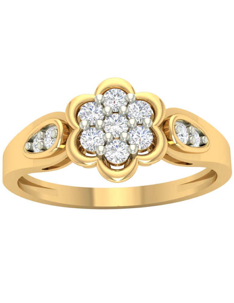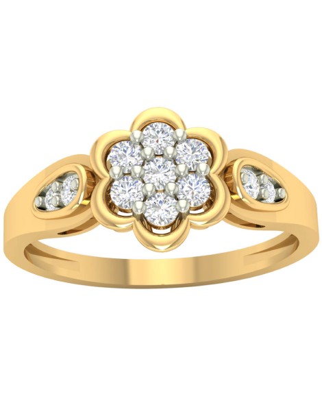 Złoty pierścionek próby 585 (14K) z kolekcji Flora to elegancki model z wyraźnym motywem kwiatu. Centralna kompozycja z białych cyrkonii tworzy efekt pełnego, lśniącego kwiatu, a subtelne zdobienia po bokach podkreślają jego kształt. Połączenie żółtego złota z elementami rodowanymi na biało wydobywa blask kamieni i nadaje pierścionkowi klasycznego charakteru. Idealny wybór dla kobiet ceniących ponadczasową elegancję.