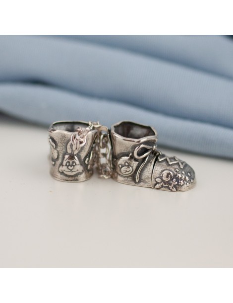 Otwierane buciki na chrzest wykonane w całości ze srebra próby 925. REALIZACJA W CIĄGU 48H. PIĘKNE AKSAMITNE PUDEŁKO I GRAWER GRATIS!!!