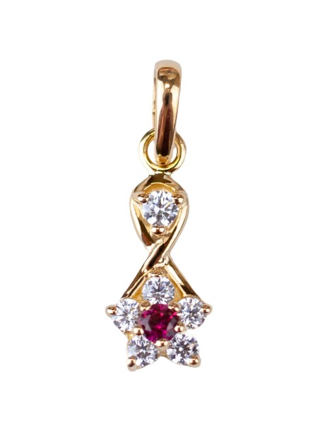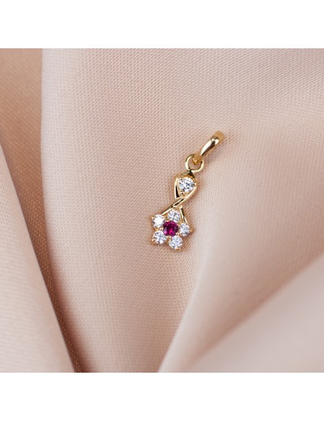 ZŁOTY WISIOREK KWIATEK Z RUBINEM PR. 585