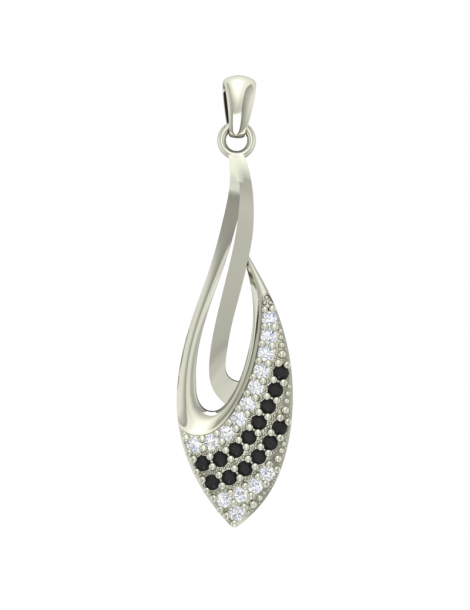 Subtelny, elegancki wisiorek przypominający łezkę, zdobiony czarnymi i białymi, ślicznie mieniącymi się cyrkoniami. Dodatkowego blasku nadają mu polerowane powierzchnie. Dzięki swojej delikatności są doskonałą ozdobą na co dzień jak i na specjalne okazje. Całość wykonana została ze srebra próby 925, dzięki czemu jest bardzo trwała.